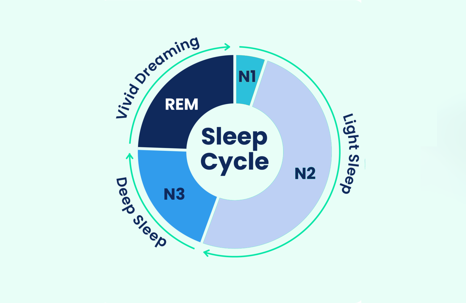 Sleep cycle doesn’t occur once, but four to six times per night and is formed by four stages. When you fall asleep, the NREM (Non-rapid eye movement) stage 1 begins which is followed by the cycle between NREM stage 2 and 3. Later on, the REM (Rapid eye movement) stage starts which leads to dreaming. As soon as stage 2 is over, a new cycle starts. If we talk about the time period of a sleep cycle, it goes on for about 90-120 minutes before another begins.